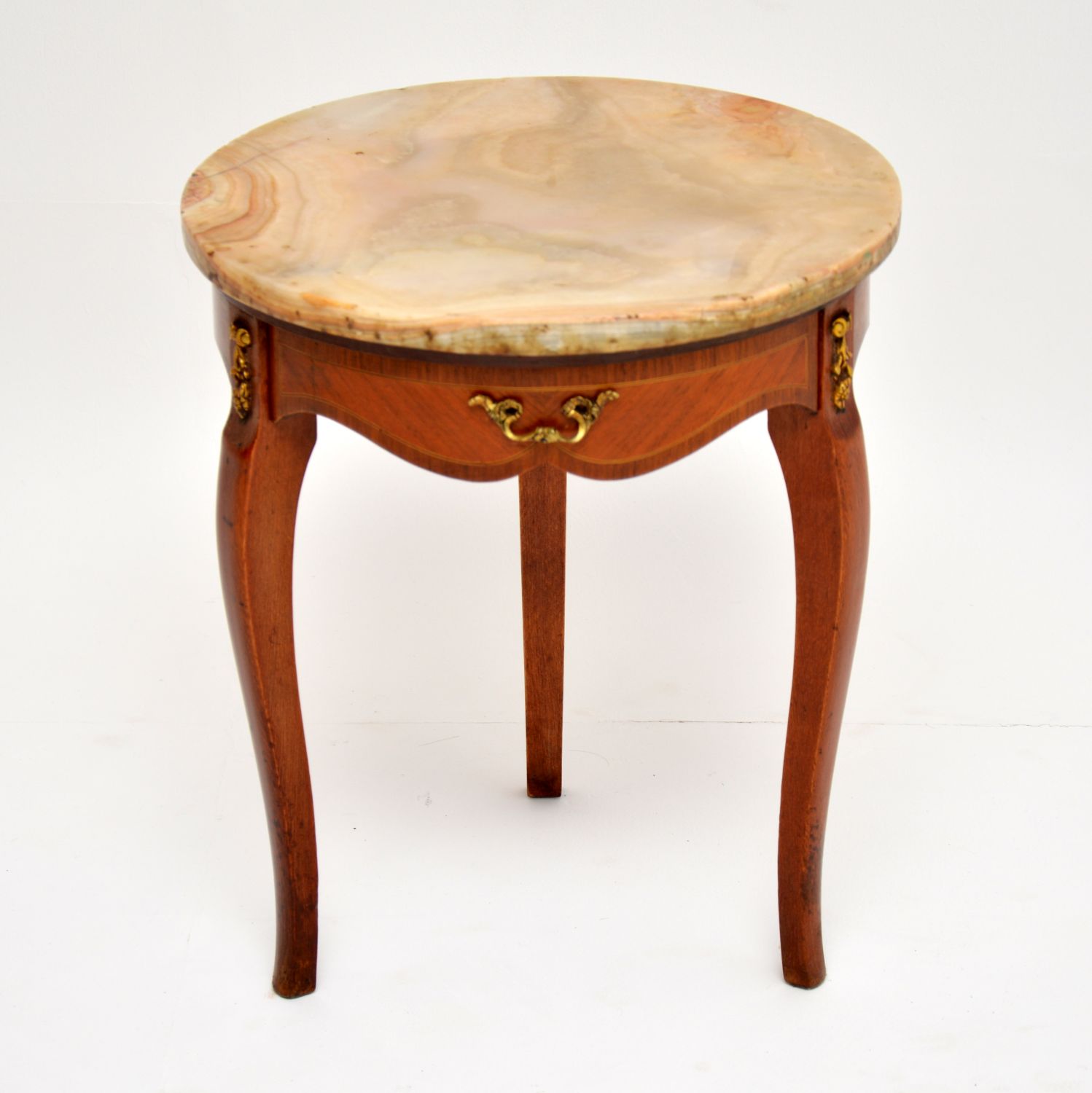 French Inlaid Kingwood & Onyx Side Table