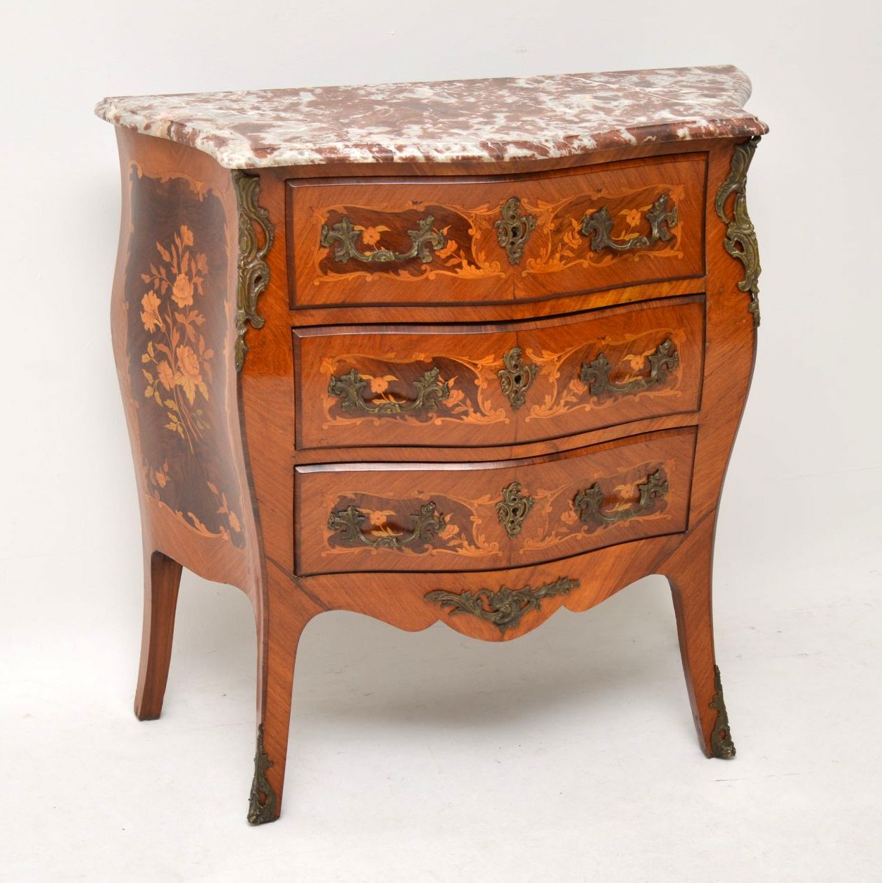 French Inlaid Marquetry Marble Top Bombe Chest c.1930 (1 of 1)