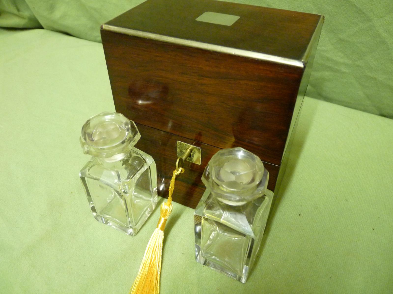 French Inlaid Rosewood Perfume Bottle Box + Bottles c.1870
