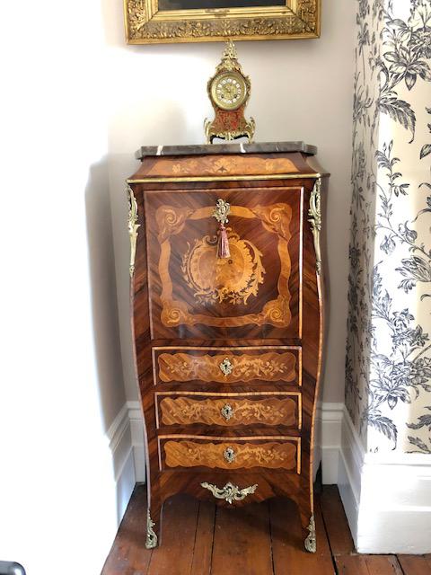 French Kingwood Bomb Escritoire Writing Desk Inlaid c.1840