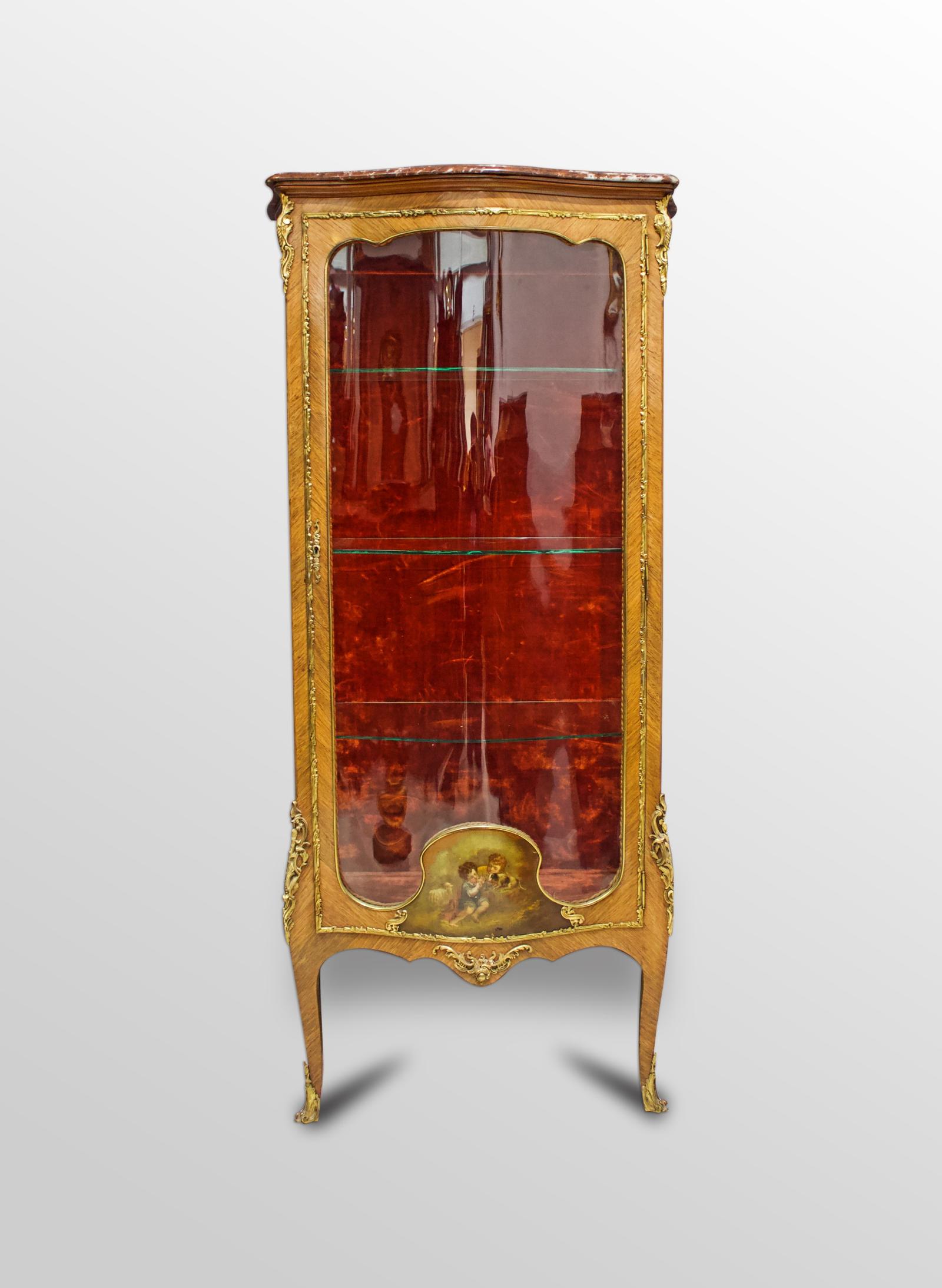 French Kingwood & Vernis Martin Painted Vitrine Cabinet