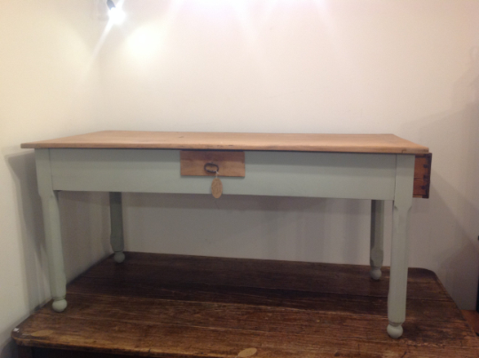 French Landes Solid Walnut Farmhouse Kitchen Table with 2 Deep Bread & 2 Knife Drawers, Painted Legs Skirt