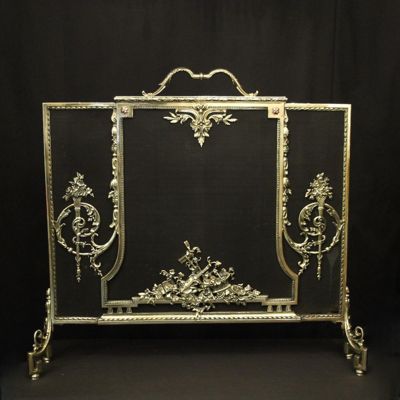 French Large Brass Antique Fire Screen