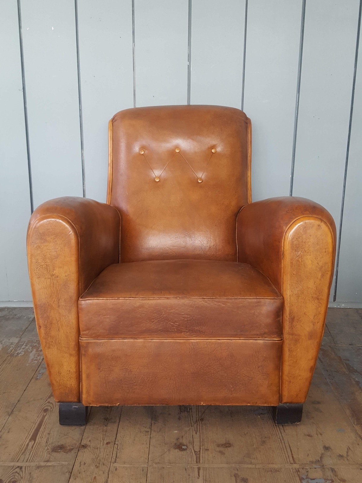 French Leather Button Back Armchair 1930