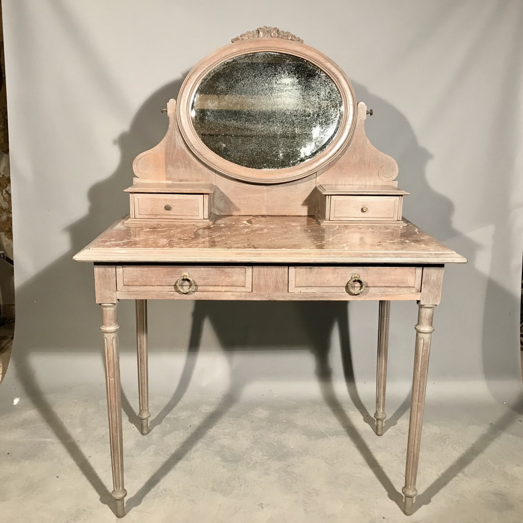 French Lime Effect Oak Dressing Table with Marble (1 of 1)