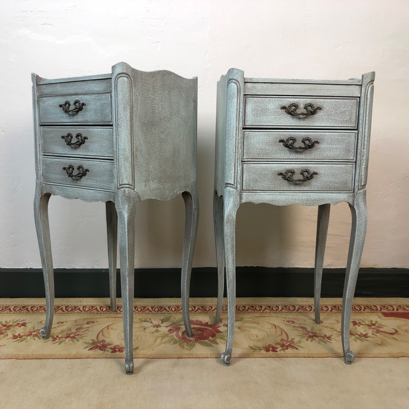 French Louis Style Bedside Tables Side Cabinets Painted in Duck Egg Blue
