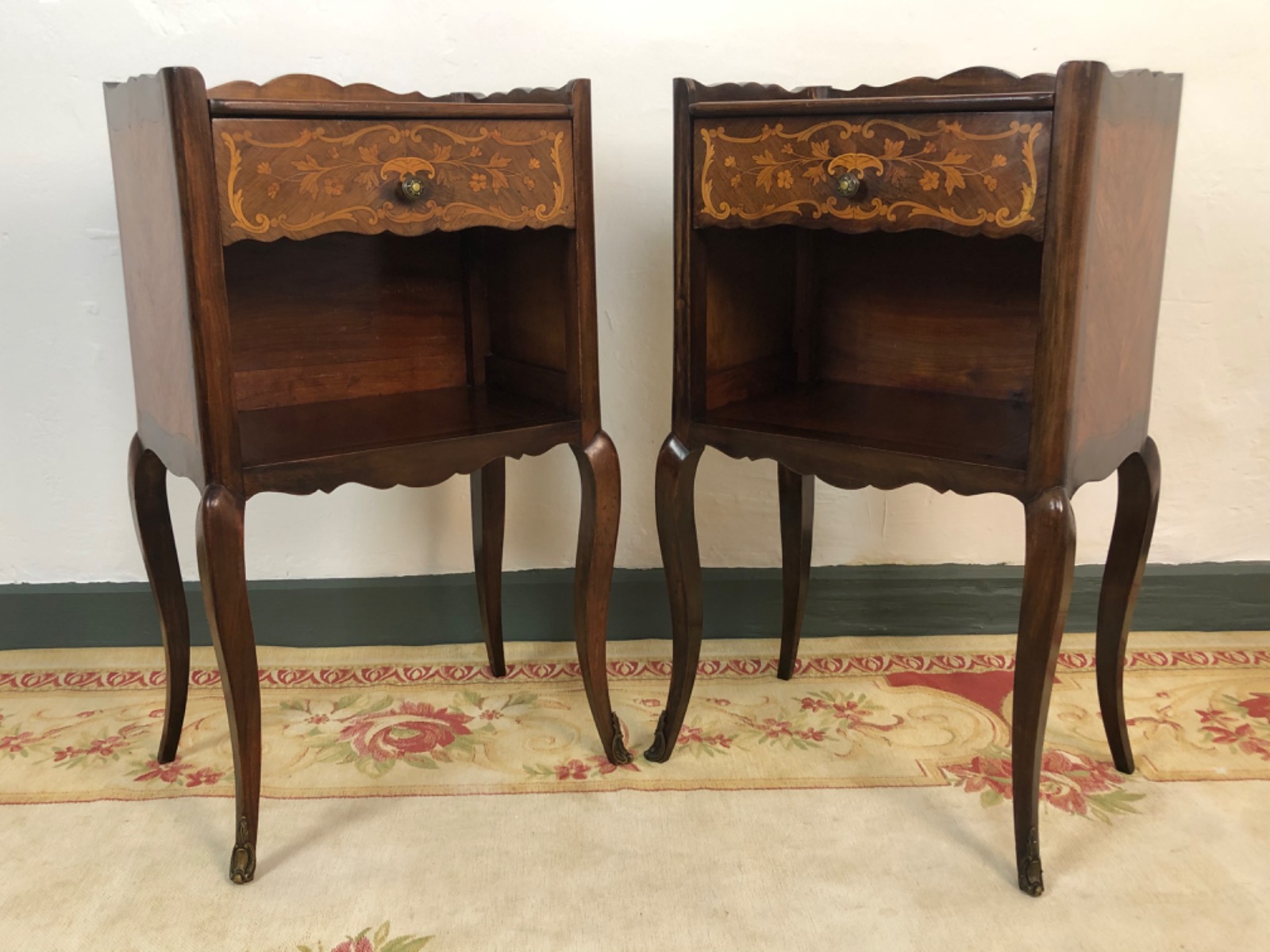 French Louis Style Marquetry Cabinets Bedside Tables
