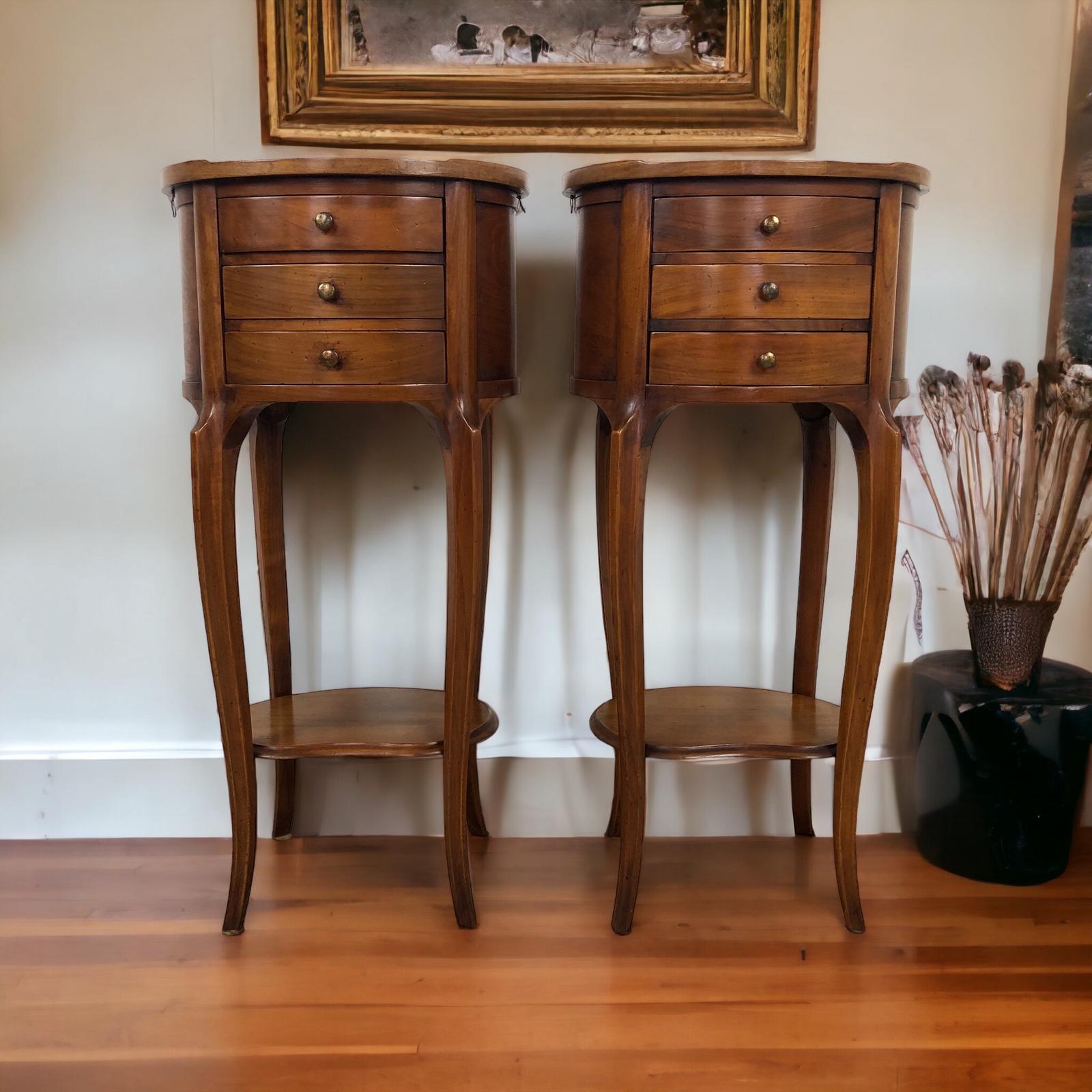 French Louis XV Style Bedside Tables Oval Side Cabinets