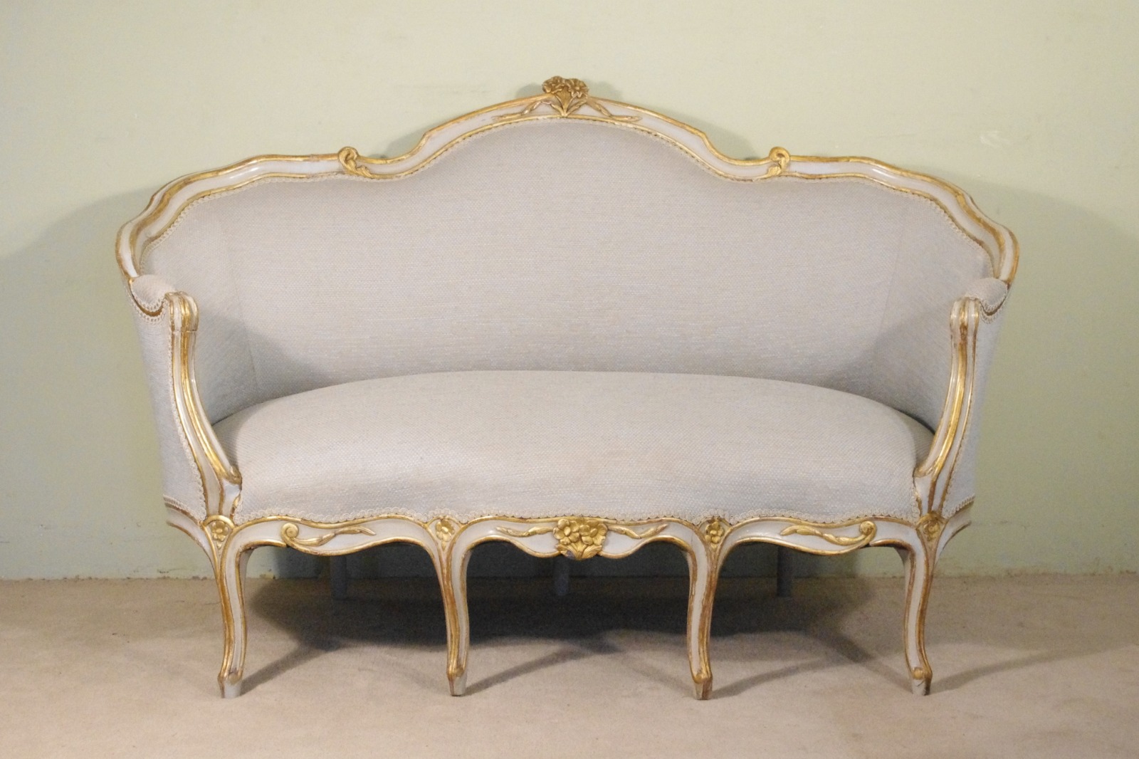 French Louis XV Style Painted & Parcel-Gilt Two Seater Sofa