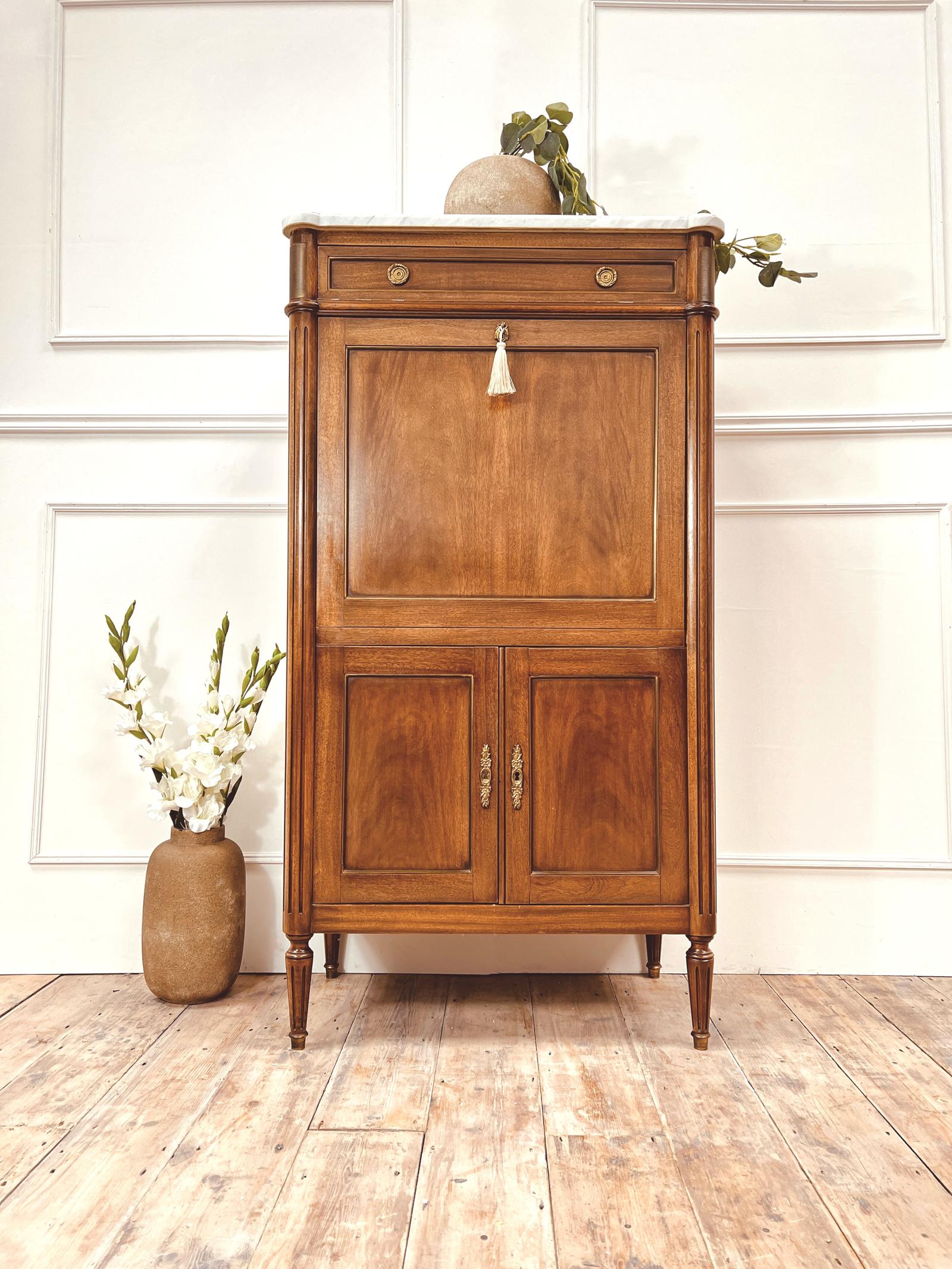 French Louis XVI Mahogany Cabinet / Tall Cupboard / Bar
