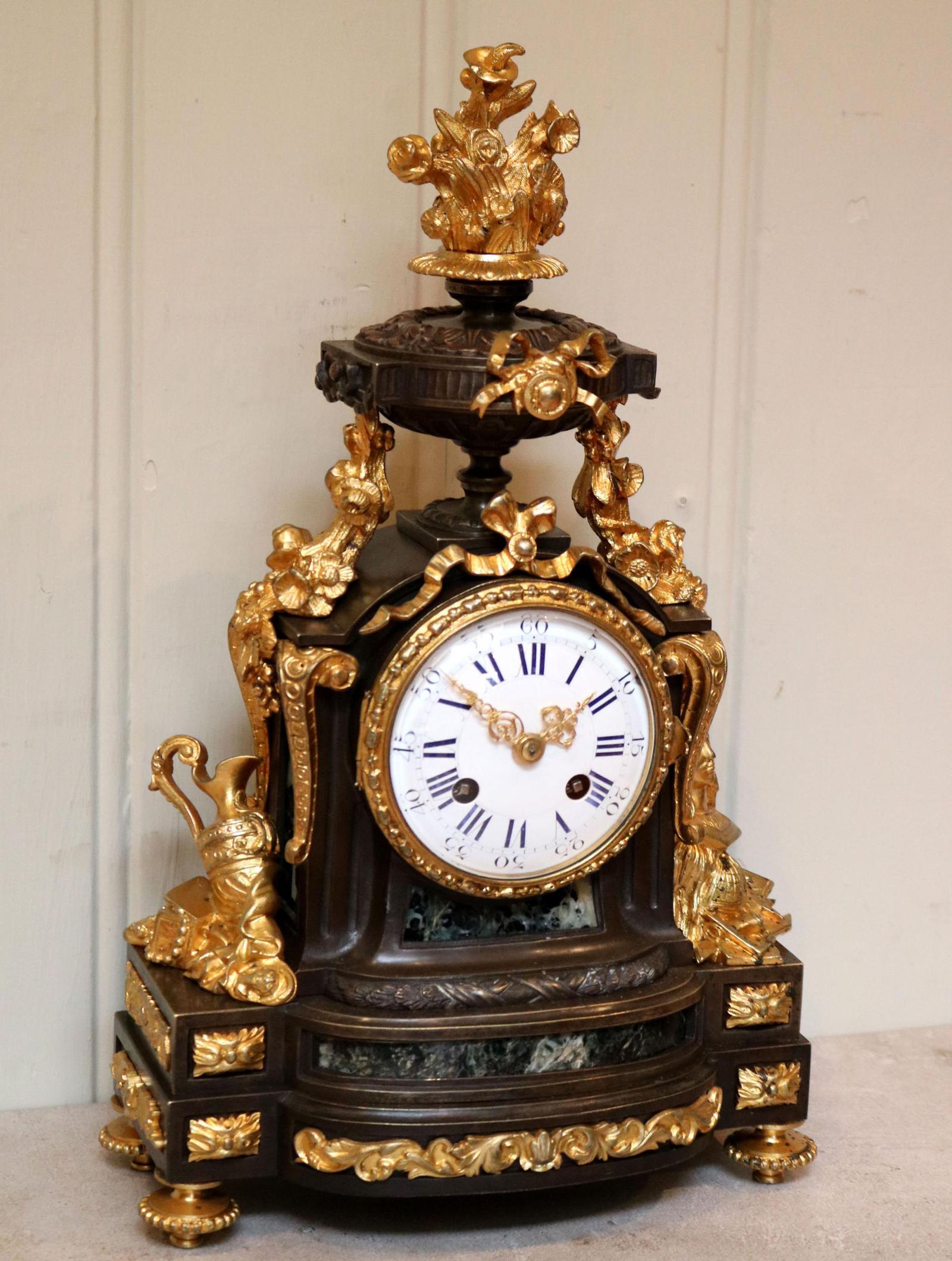 French Louis XVI Style Parcel-Gilt Bronze Mantel Clock (1 of 18)