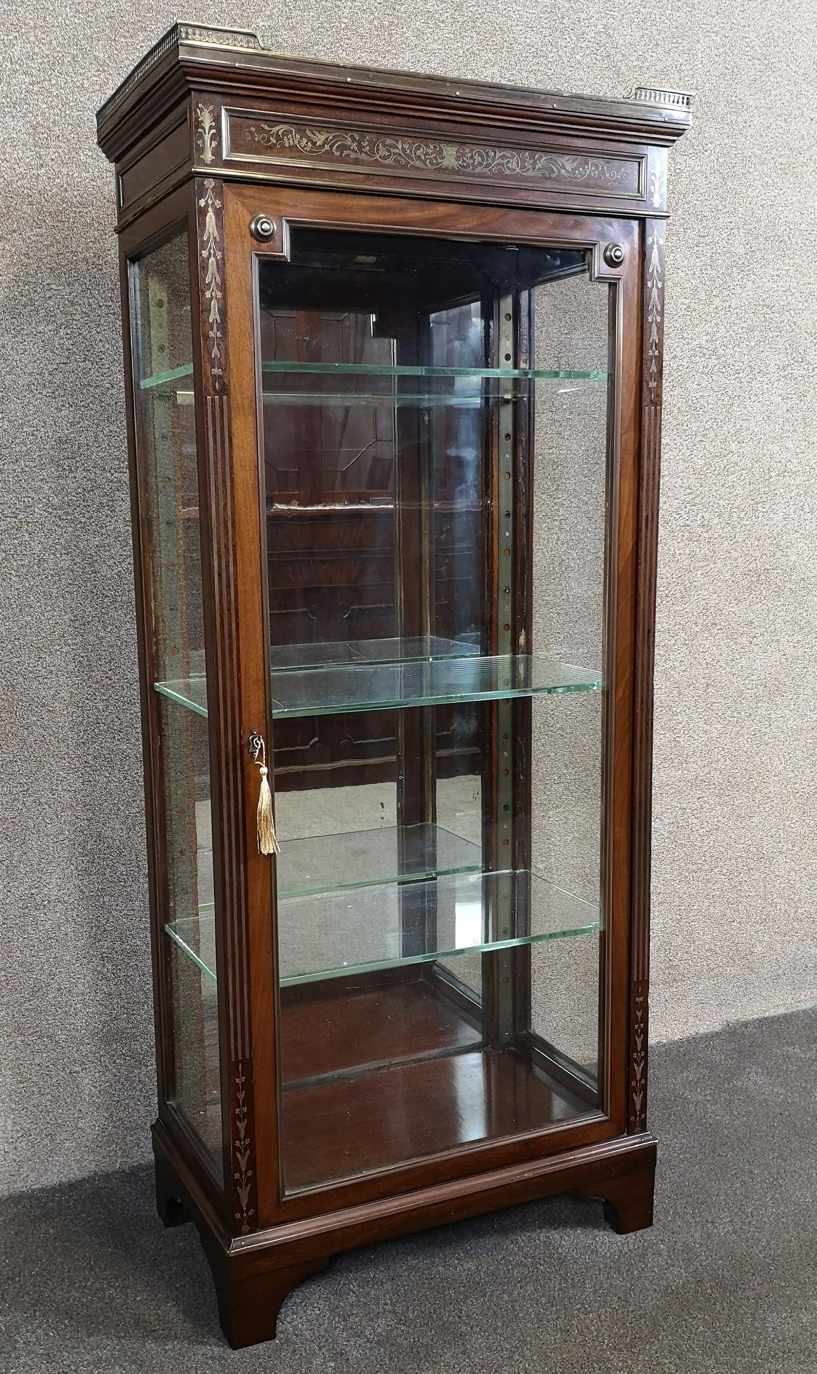 French Mahogany and Inlaid Brass Vitrine Cabinet (1 of 15)