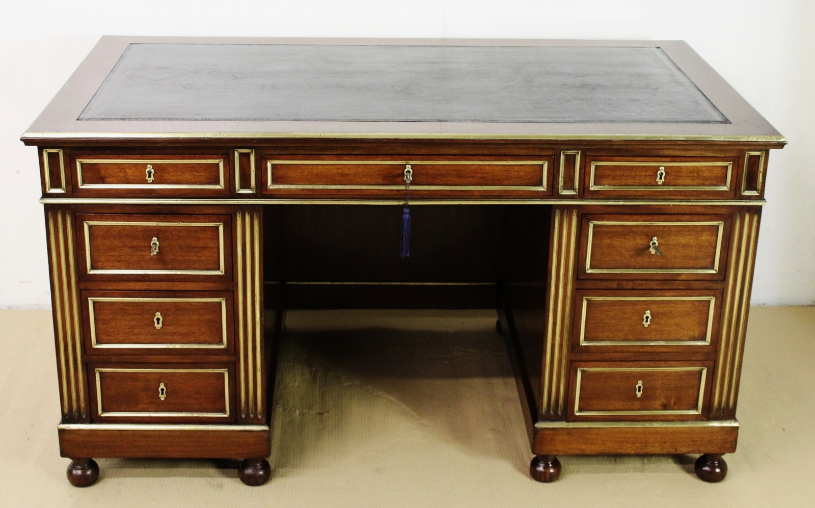 French Mahogany & Brass Inlaid Pedestal Desk (1 of 1)