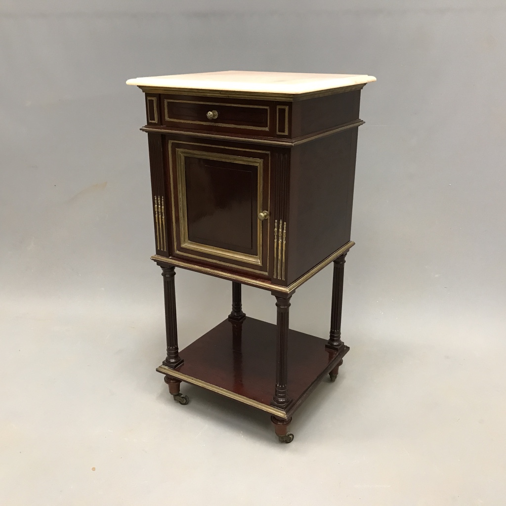 French Mahogany & Brass Inlay Pot Cupboard
