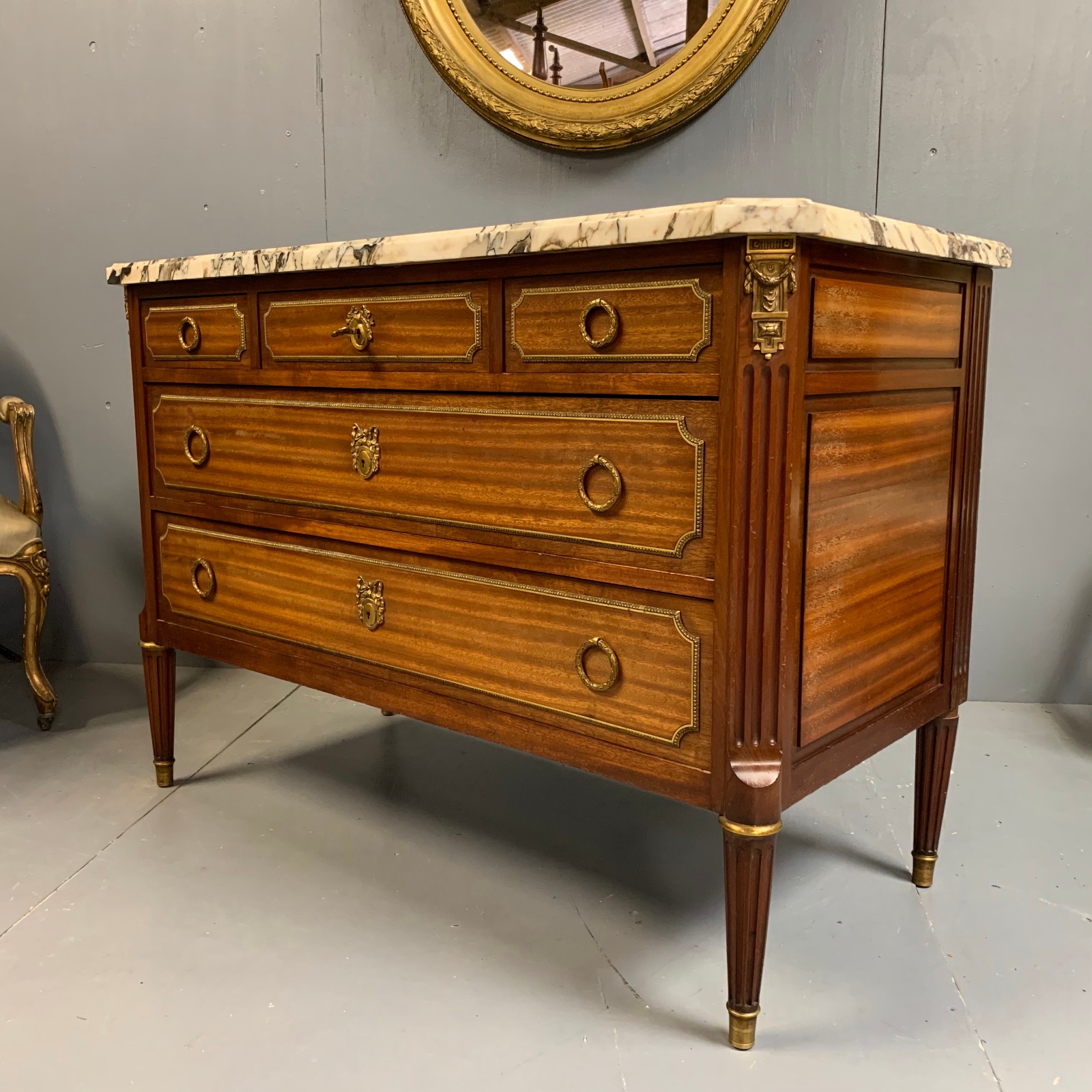French Mahogany & Brass Marble Top Commode (1 of 10)