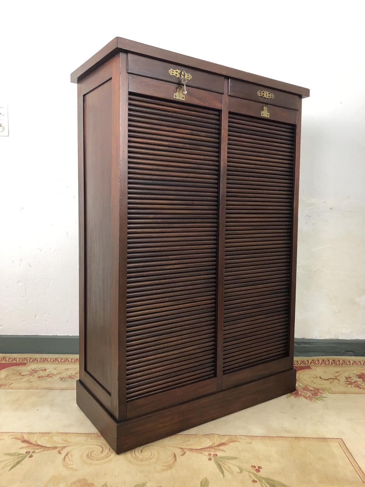 French Mahogany Double Filing Cabinet Tambour With Trays