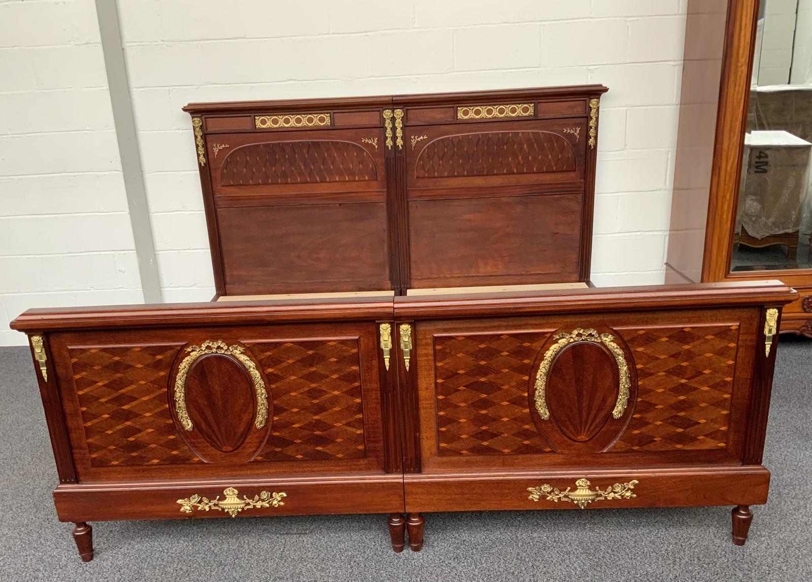 FRENCH MAHOGANY KING SIZE BED WITH BRASS DETAILING