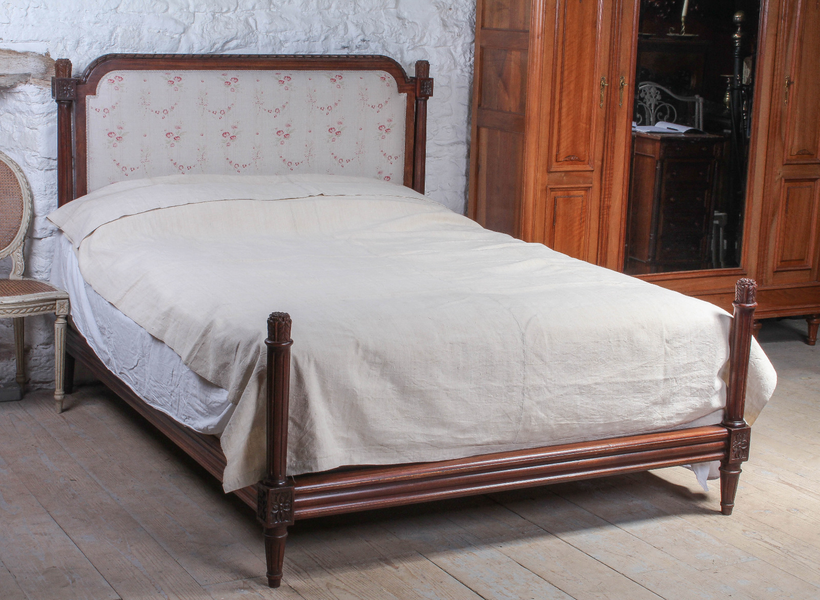 French Mahogany Frame Newly Upholstered King Size Bed