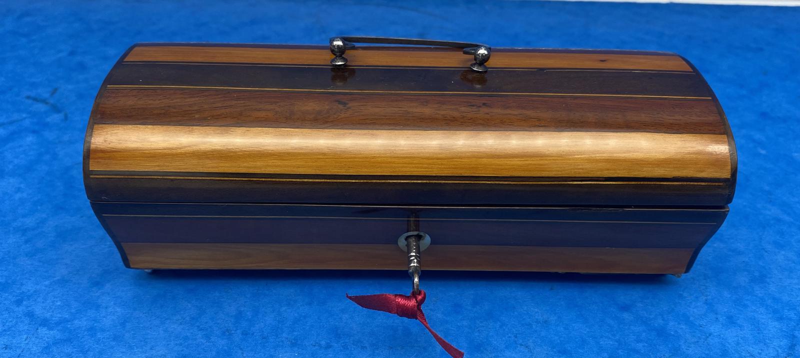 French Mahogany Glove Box with Boxwood, Ebony & Fruitwood Stripes