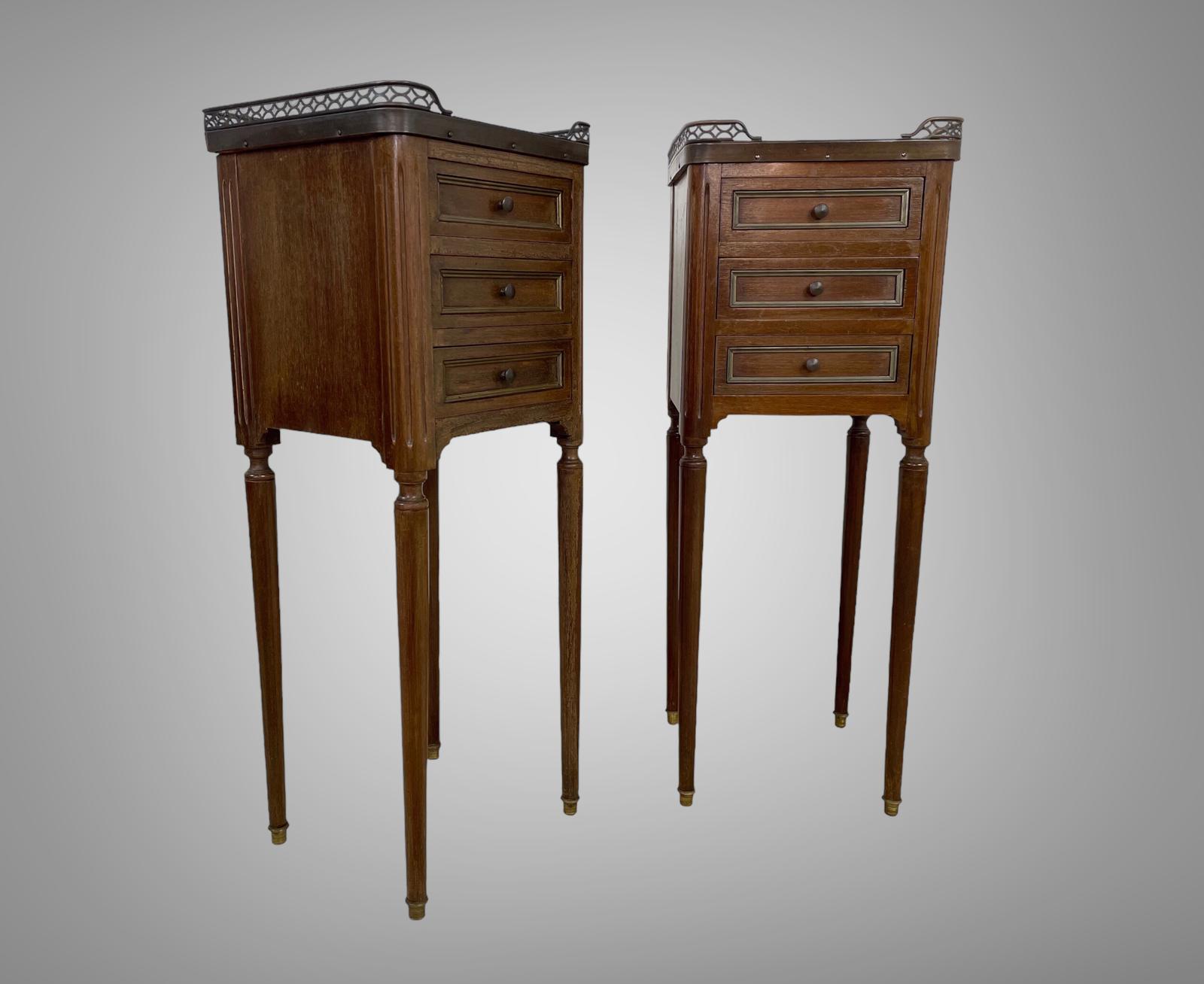 French Mahogany Marble Top Bedside Or End Tables Petite