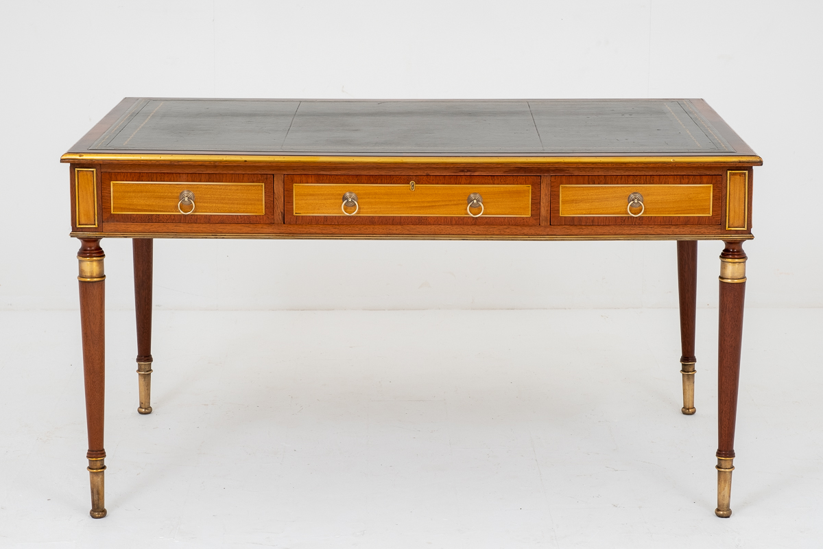 French Mahogany & Satinwood 3 Drawer Writing Table C.1900 (1 of 1)