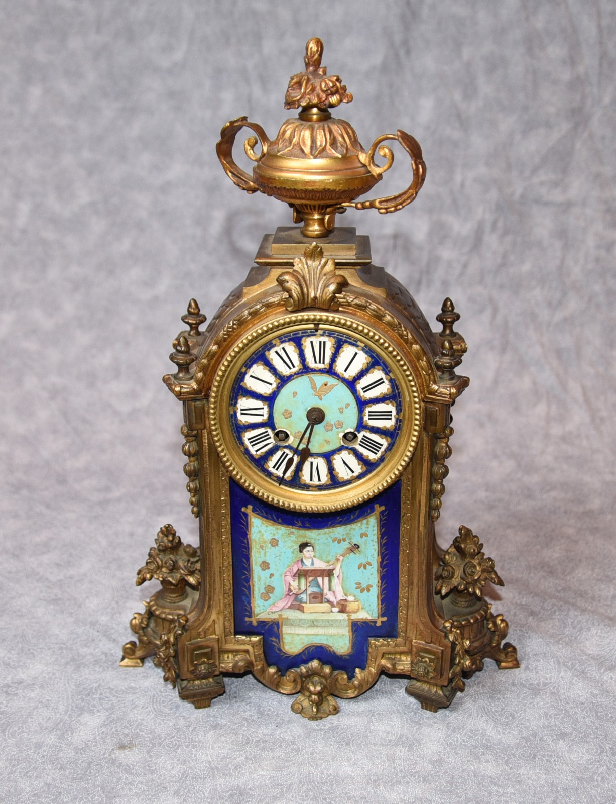 French Mantle Clock Japanese Decoration Sevres Porcelain Time c.1920