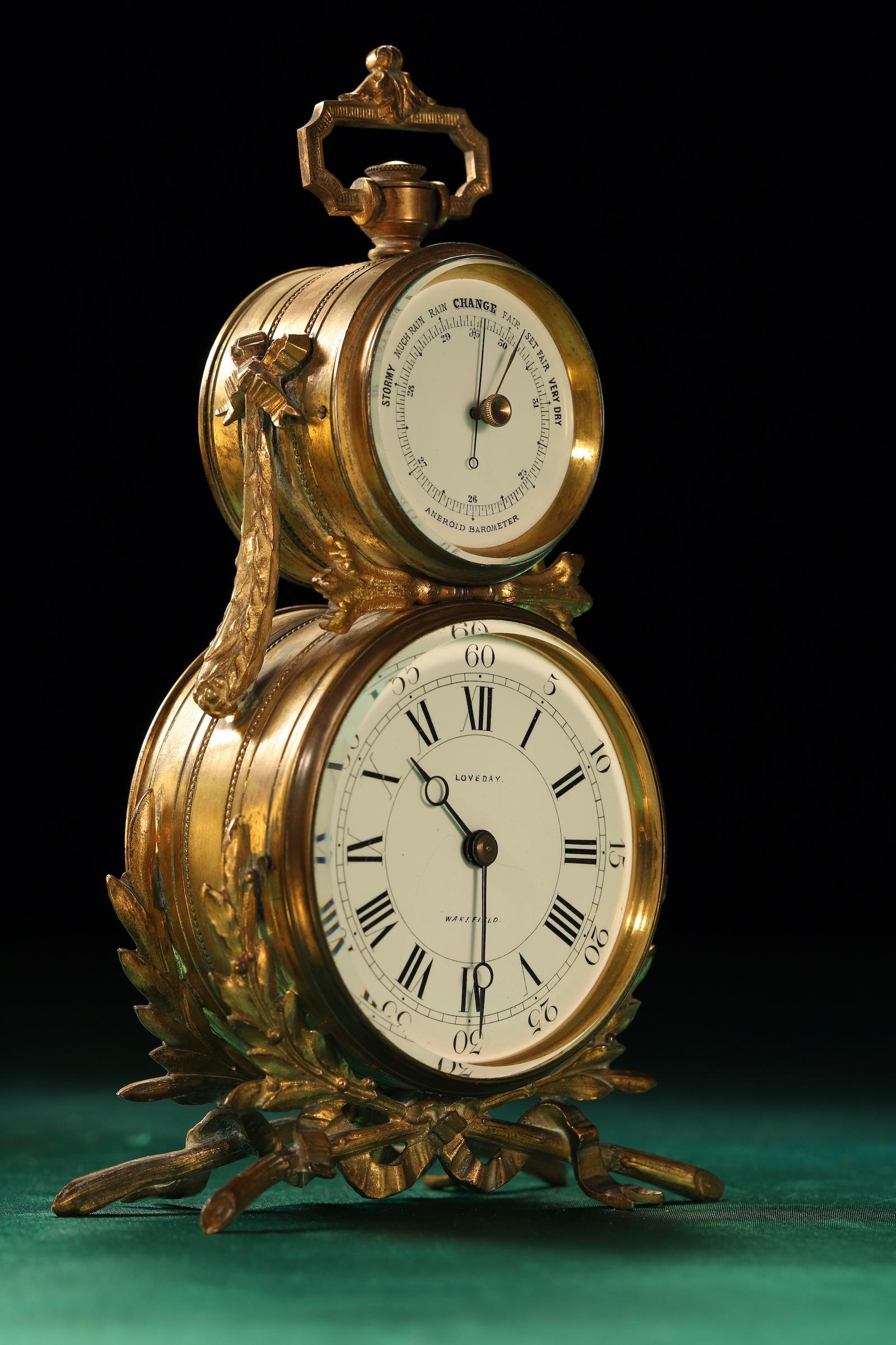 French Mantle or Boudoir Clock Barometer Retailed by Loveday c.1860