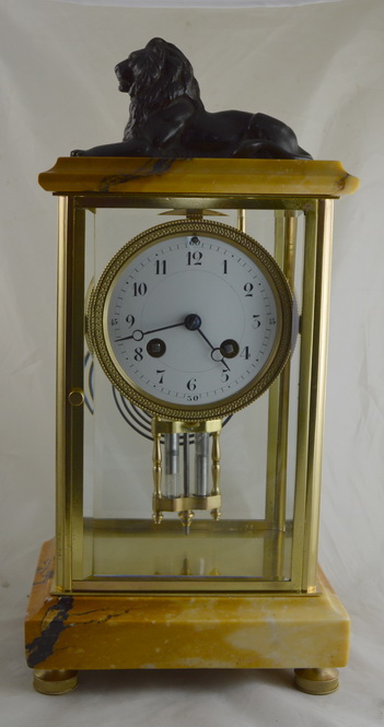 French Marble & Brass Four Glass Mantel Clock c.1895