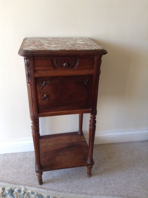 French Marble Top, Walnut Bedside Cabinet