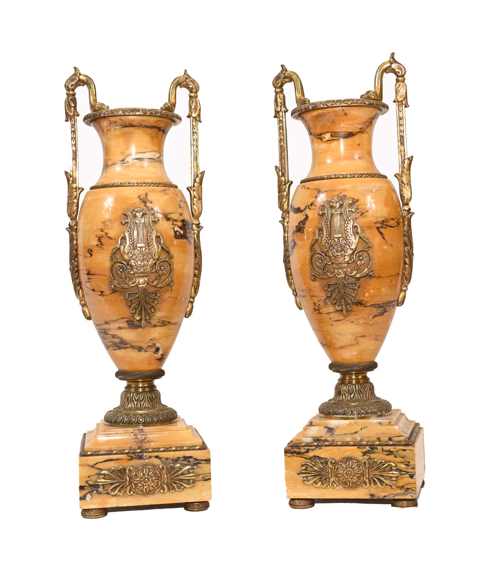French Marble Urns Amphora Form Empire Cassoulets 1880