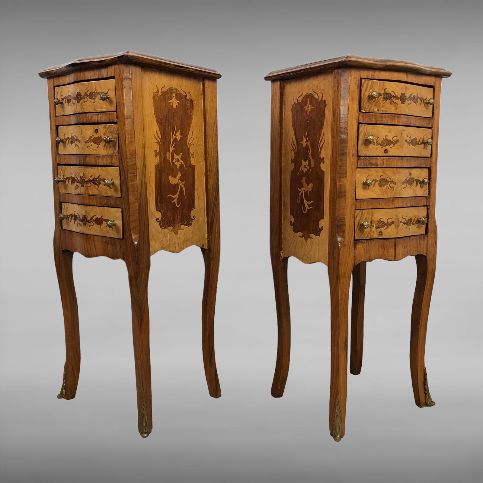 French Marquetry Bedside Chest of Drawers, Louis XVI Style