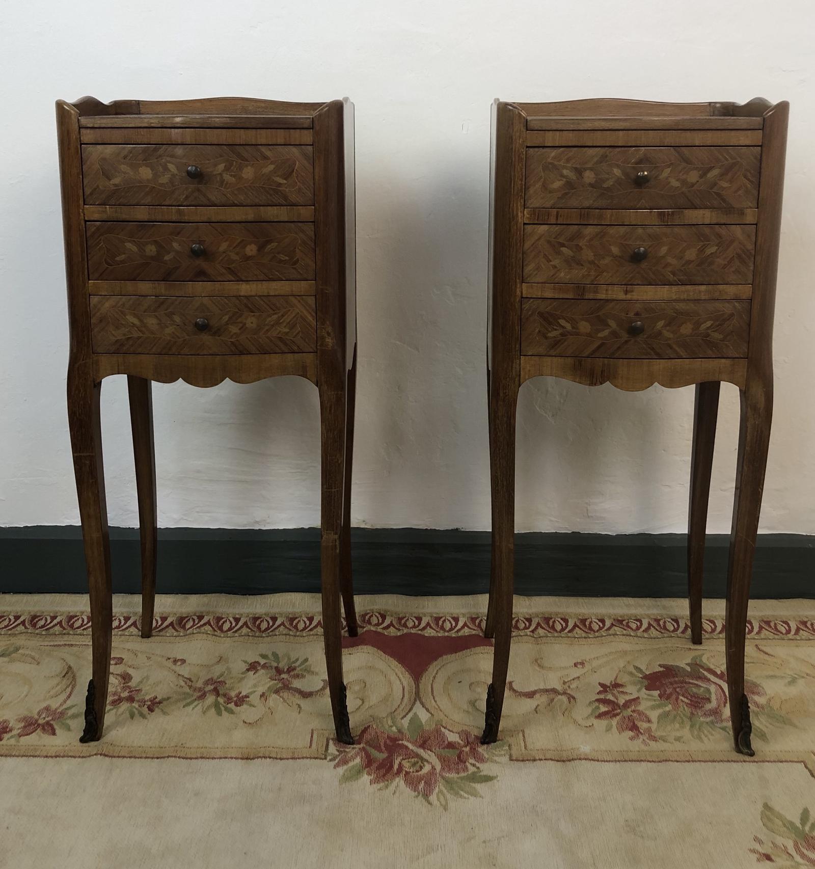 French Marquetry Kingwood Bedside Tables Rustic Distressed