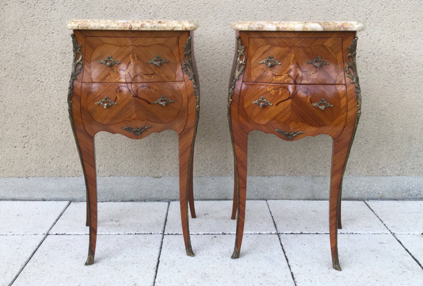 French Marquetry Pair Bedside Cabinets Occasional Tables