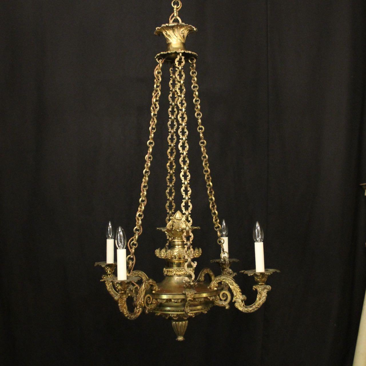 French Mid 19th Century Gilded Bronze 4 Light Chandelier