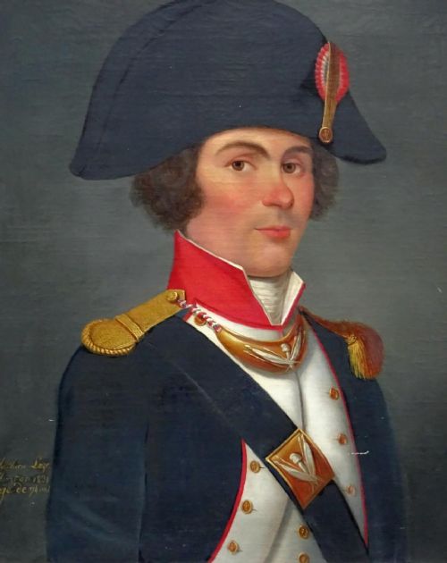 French Military Officer National Guard Wearing Bicorne Hat 18th Century Oil Portrait Painting