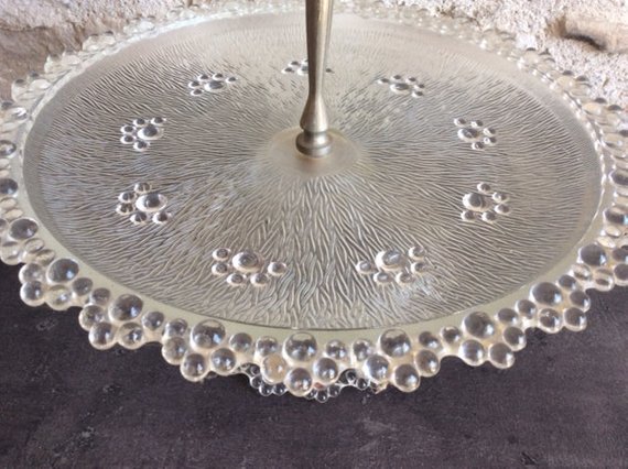 French Moulded 2 Tier Cake Stand with Silver Plate Support Perfect Condition