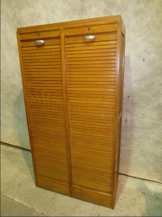 French Oak Double Tambour Fronted Filing Cabinet