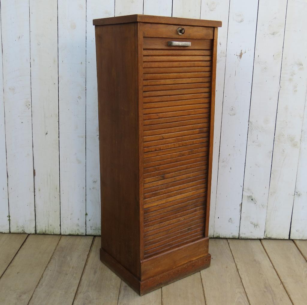 French Oak Industrial Tambour Front Filing Cabinet