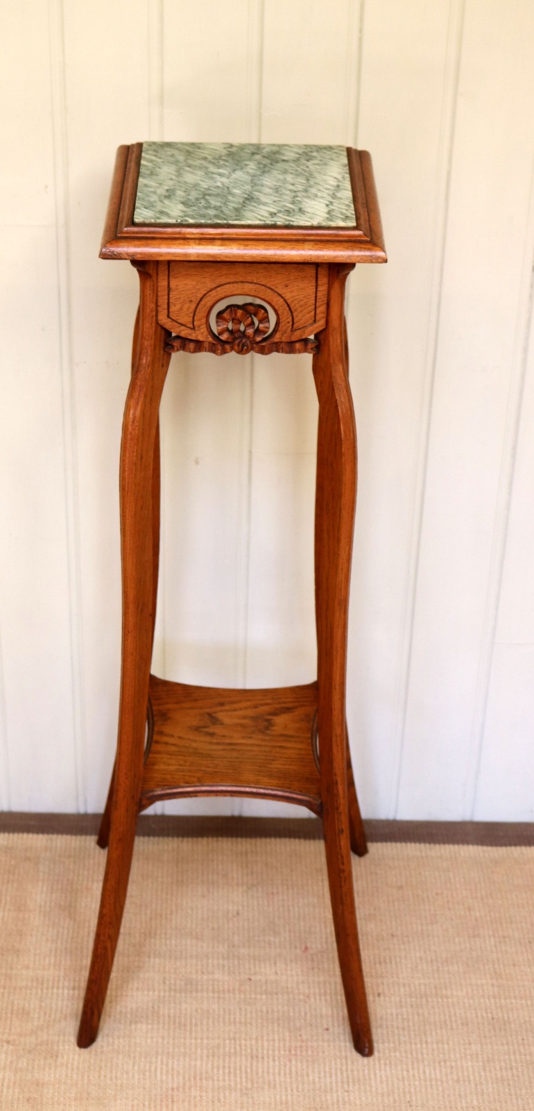 French Oak Marble Top Plant Stand c.1900 (1 of 1)