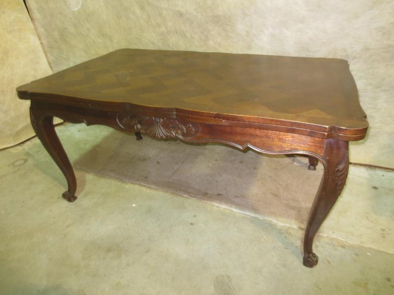 French Oak Parquet Draw Leaf Table c.1920