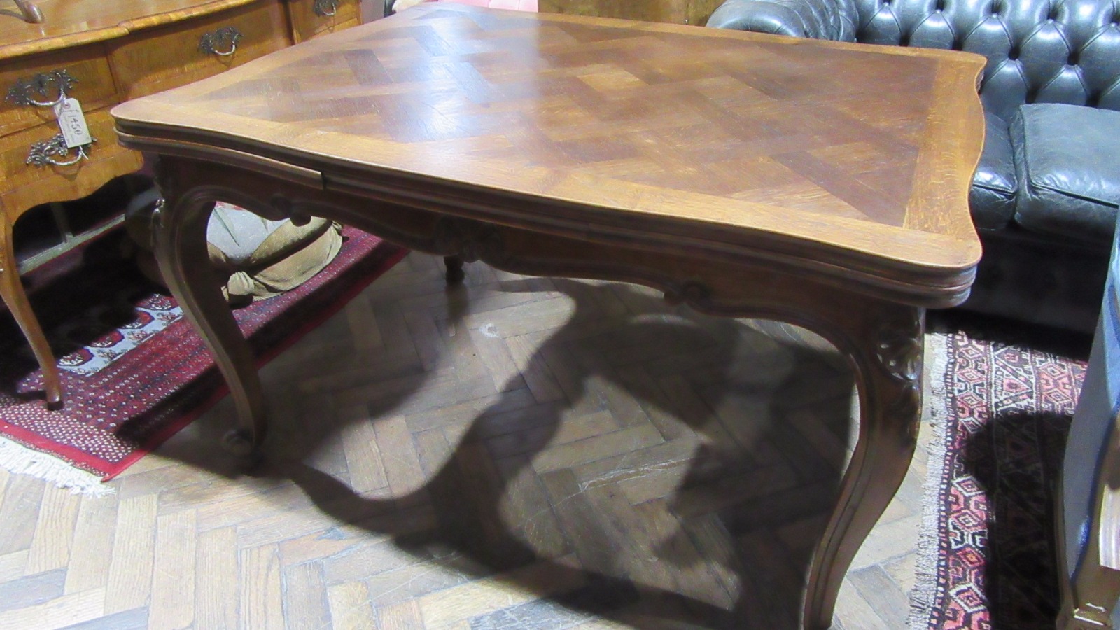 French Oak Parquetry Top Draw Leaf Dining Table 1930s
