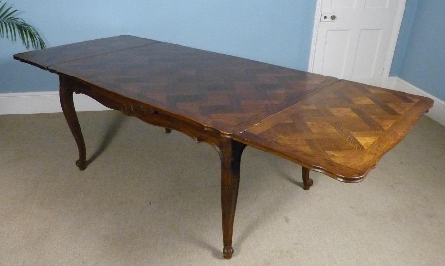 French Oak Parquetry Top Extending Dining Table