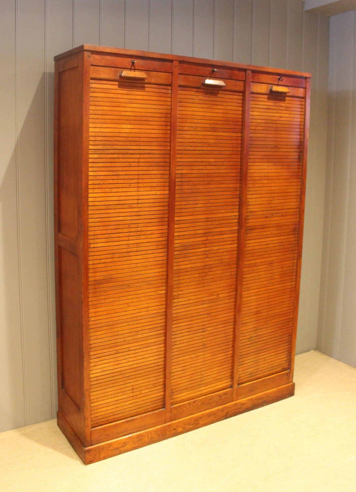 French Oak Triple Tambour Front Filing Cabinet (1 of 11)