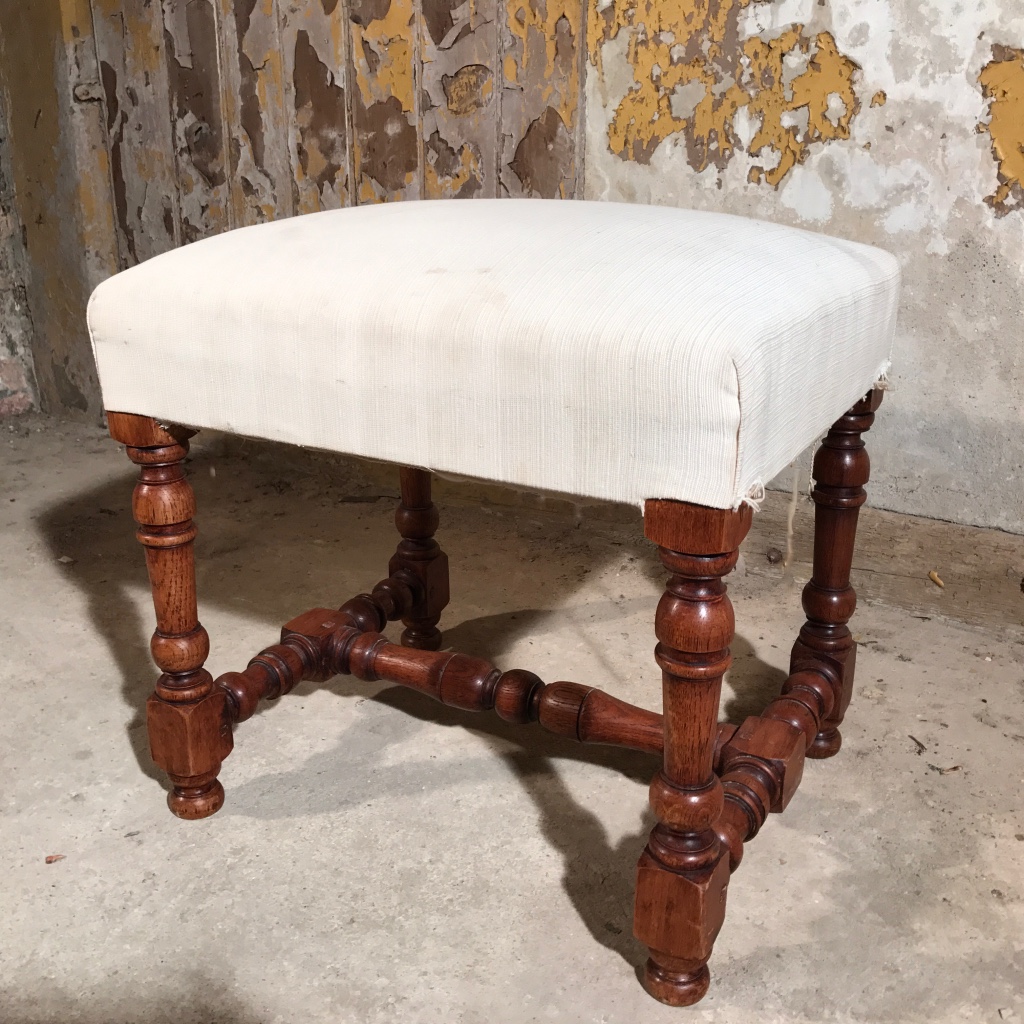 French Oak Turned Leg Stool c.1900 (1 of 1)