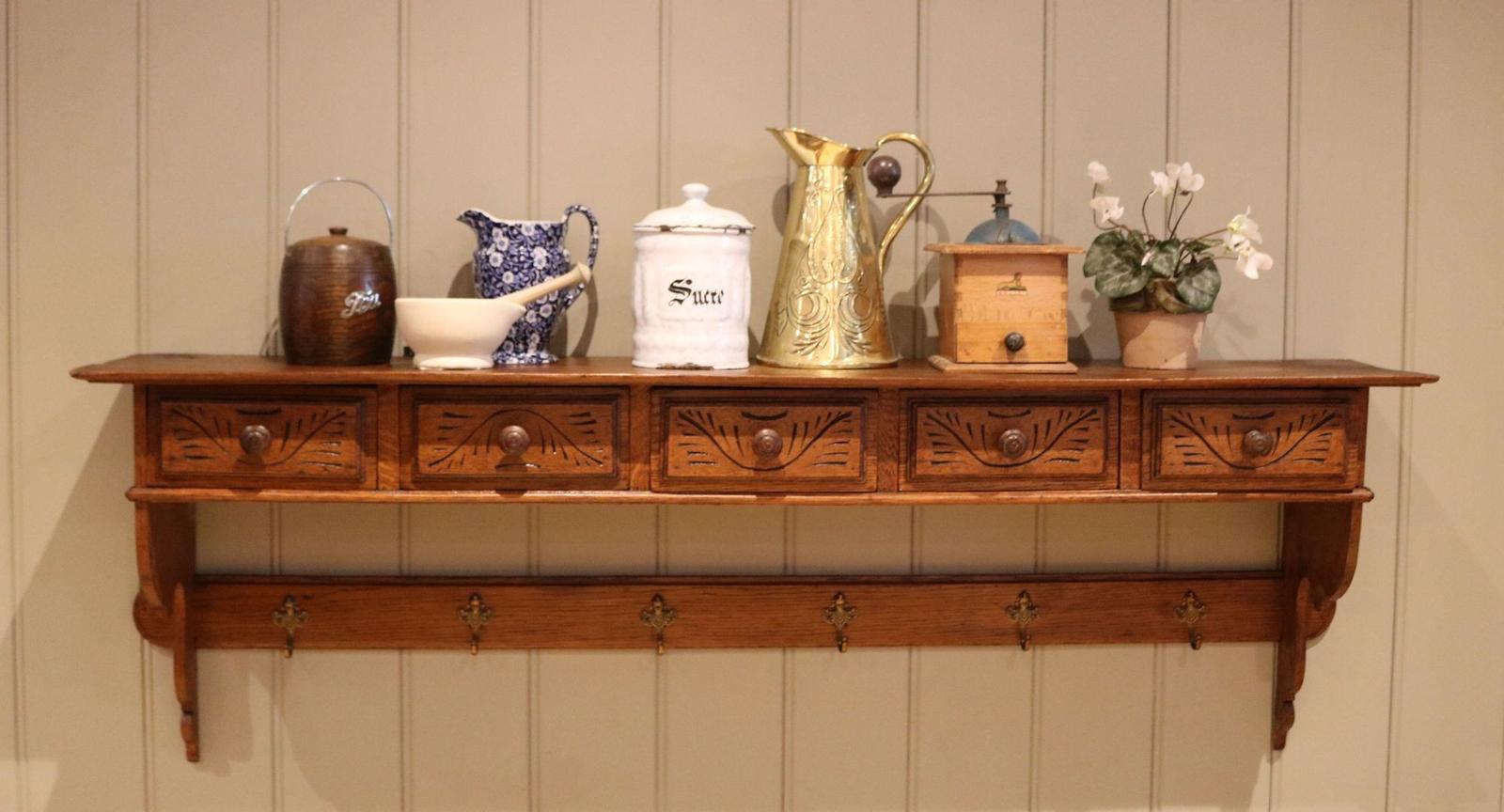 French Oak Wall Shelves with Drawers (1 of 11)