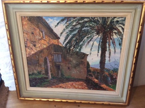 French Oil on Canvas Antique 19th Century Impressionist Style French Manor Manoir Signed Original Gilt Frame 61 cm x 50 cm