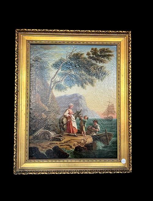 French Oil on Canvas from the Early 1800s Depicting a Scene of Family Life