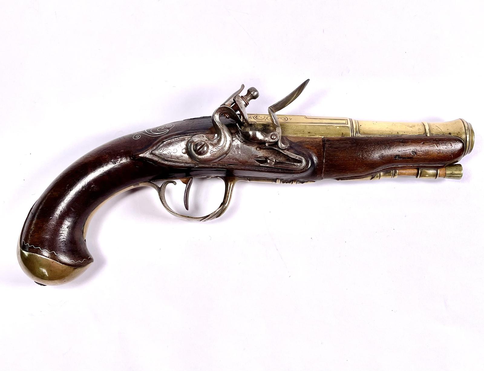 French or Belgium Brass Barrelled Flintlock Blunderbuss Pistol