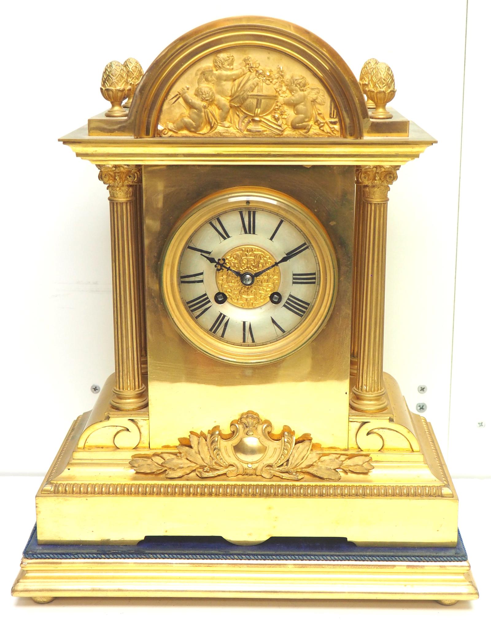 French Ormolu 4 Pillar Mantel Clock Classic 8 Day Striking Mantle Clock With Silver Dial (1 of 15)