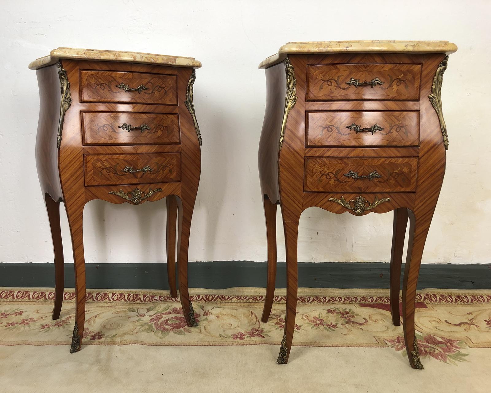 French Oversized Bedside Tables Cabinets with Marble Tops